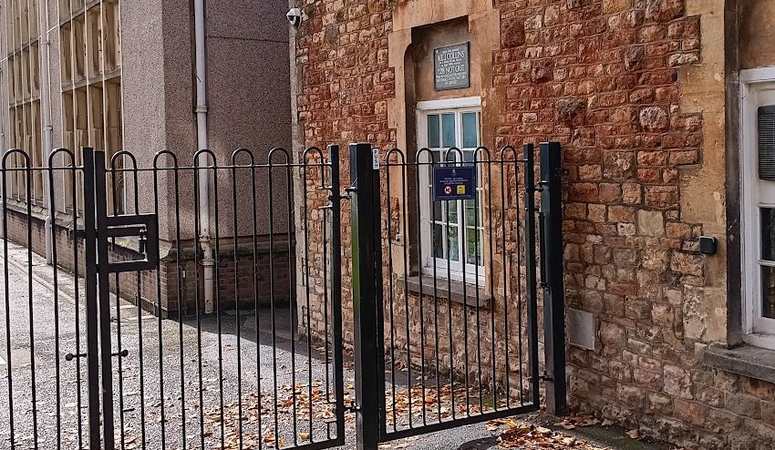 To the right of the modern building is another old building, adjacent to a set of gates leading to Guthrie Road. Above a window of this building is a plaque, unveiled in 1962, commemorating Collins’ innings: