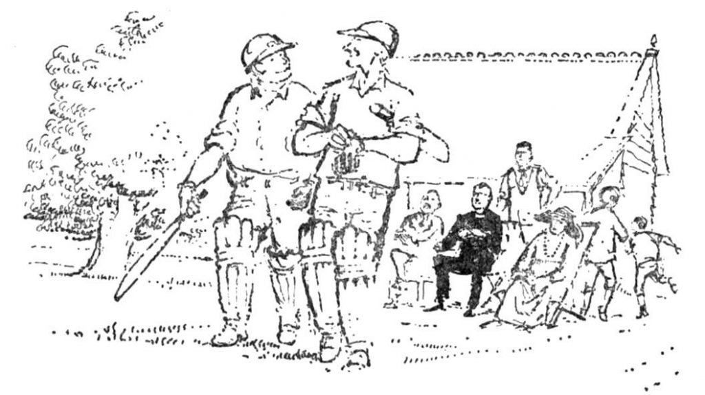 ‘Play the game, Tillingfold,’ came an angry shout from the Pavilion, which poor Jim Saddler heard, and was so distressed to hear that he let the next ball pass him for a bye, which would have been two but for Sid’s smartness and the batsmen’s hesitation.