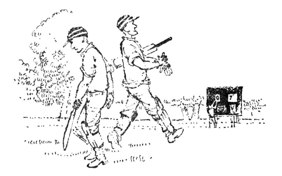 The fielders ran to their places to save time, perhaps, for one more over. Sid bowled another maiden.